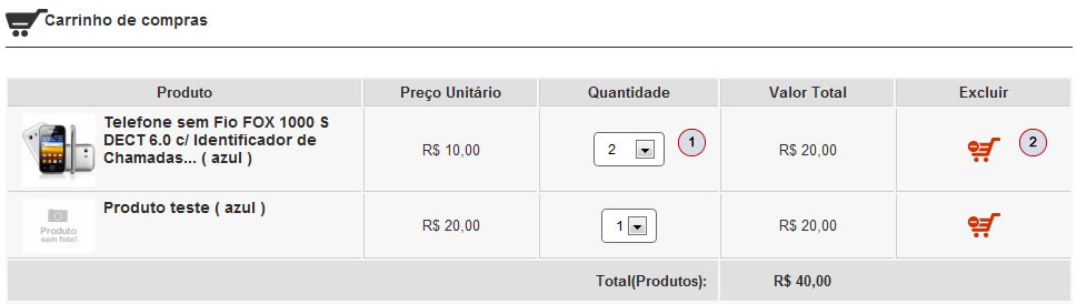 1) Escolha a quantidade de cada um do(s) produto(s) inserido(s) no carrinho;