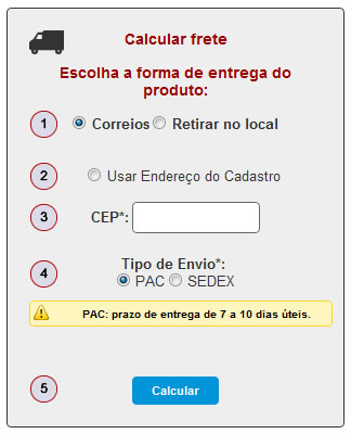 5) Clique para calcular o frete.