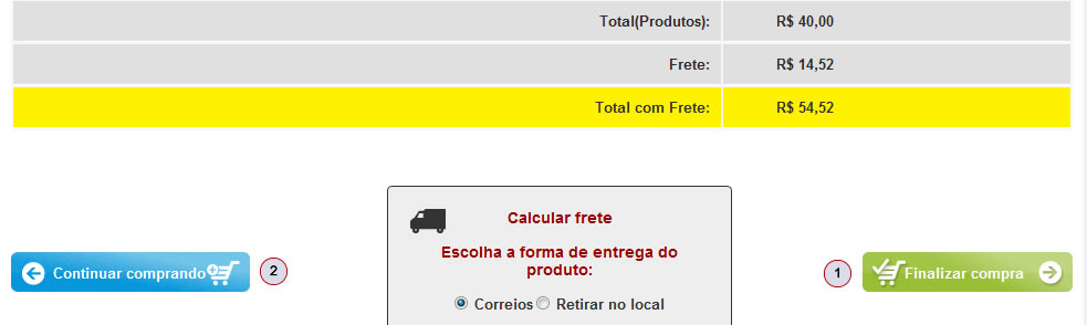 D) Depois de clicar em 'Calcular' o frete será exibido abaixo do Total de Produtos, como exemplifica a figura: