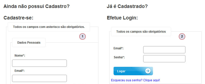 1) Caso não tenha cadastro na loja, será necessário efetuar o cadastro para finalizar a compra.