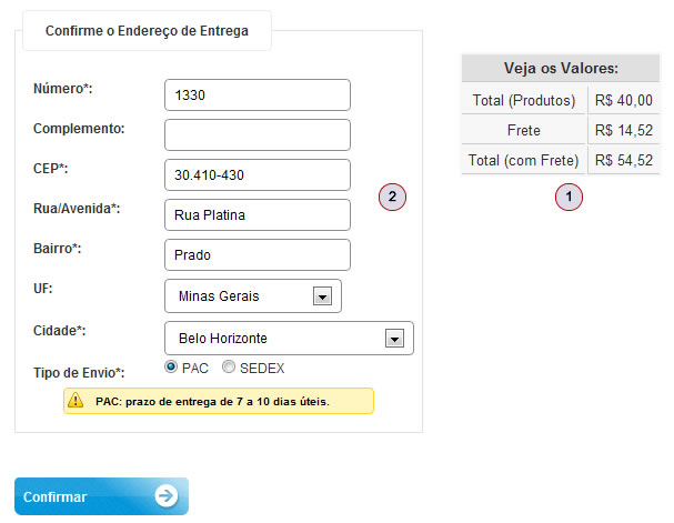 2) Aparecerá o endereço de entrega.